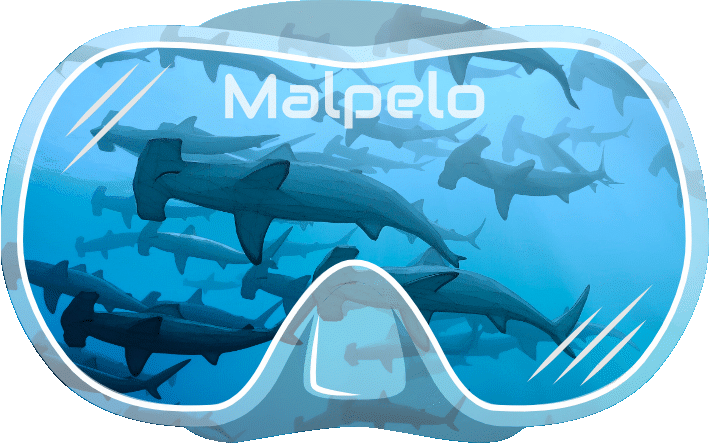 You can’t capture the scale of this location without a split-shot. Topside, we featured the legendary rock formation of Darwin’s Arch (now the Pillars of Evolution), the sentinel that marks the spot. But the real show is below, so we devoted the rest of the mask to the titans. We illustrated a massive Whale Shark gliding through the blue because seeing these gentle giants here is the ultimate prize. Beneath it, we filled the deep with the silhouettes of hundreds of Hammerheads, recreating that feeling of being completely surrounded by apex predators.